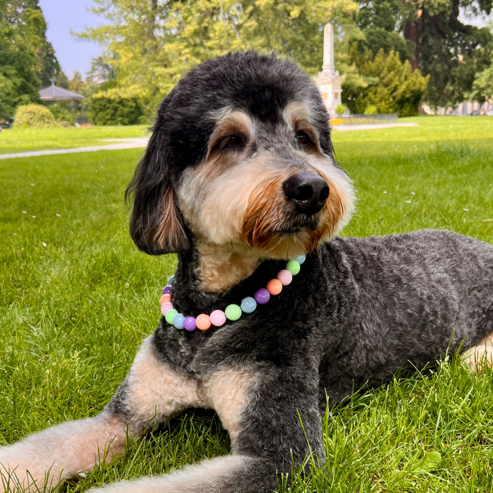The Candy Comet Acrylic Bead Dog Collar is a custom, handcrafted accessory designed to combine modern aesthetics with lasting durability. Made with glossy, pastel-toned acrylic beads and reinforced stainless steel wire, this slip-on collar offers both visual charm and reliable function. Its colorful design adds a pop of fun to your dog’s look while maintaining a secure and comfortable fit.